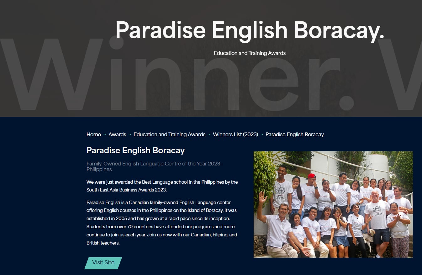 - Awarded the Best family-owned English Language center located on the Island of Boracay in the Philippines in 2023 and 2024.