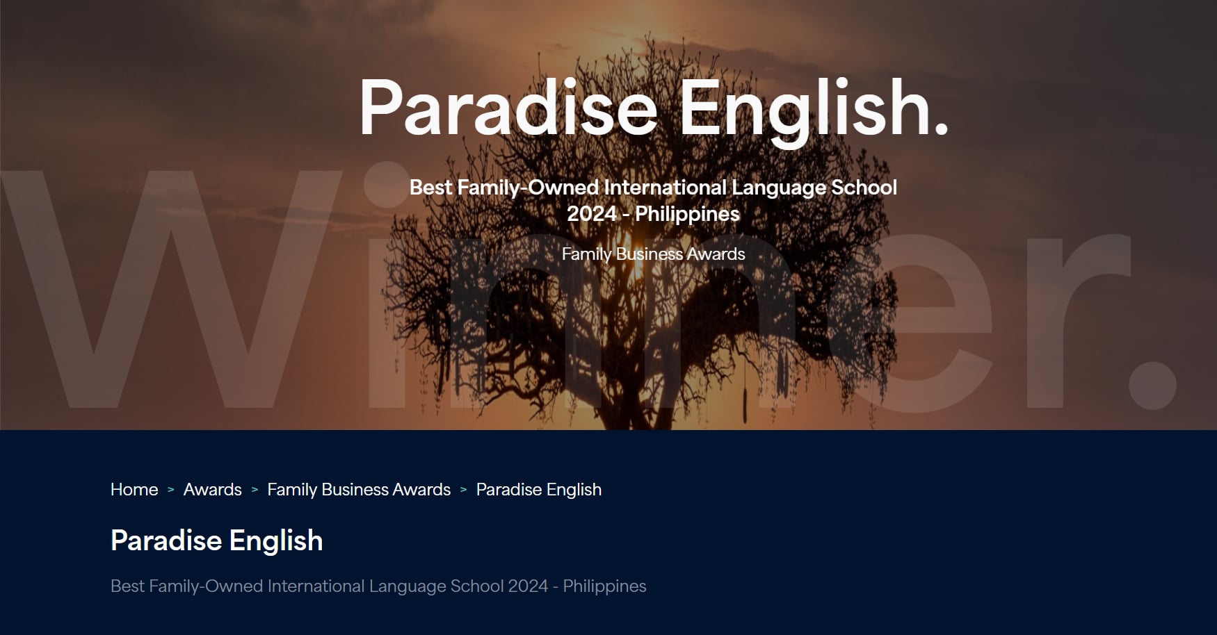 Winner: Education and Training Awards 2023 – Family-Owned English Language Centre of the Year, Philippines.